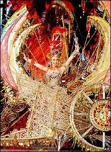 نئوليدا هرنادز که به عنوان ملکه در بخش لباس های فانتزی جشنهای خيابانی سال 2006 در سنتا کروز دتنريف در اسپانيا انتخاب شده است.