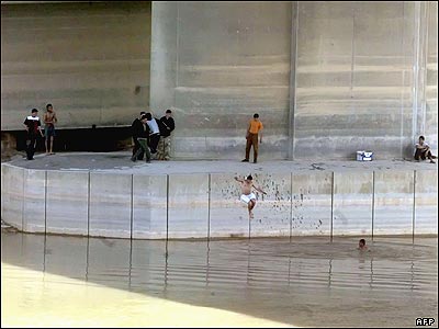 شهروندان بغداد در کنار رود دجله در مرکز اين شهر. گفته می شود که دولت رفت و آمد اتومبيل ها را به دليل نماز جمعه قدغن کرده است.