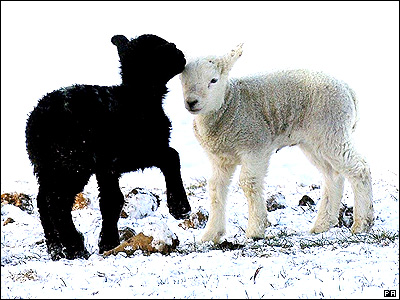 بره های کوچک در سرمای زير صفر زمستان بريتانيا