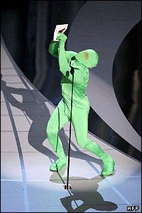 بن استيلر، هنرپيشه آمريکايی که با لباس مخصوص سبز رنگی در صحنه ظاهر شد و بهترين جلوه های ويژه را معرفی کرد.