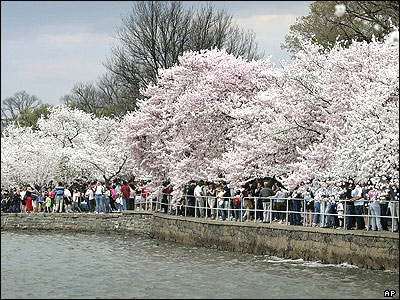 فستيوال شکوفه گيلاس در يکی از پارک های واشنگتن در آمريکا.اين فستيوال با بارش اولين باران های ماه آوريل خاتمه می یابد.
