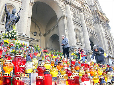 مردم لهستان به مناسبت اولين سالگرد درگذشت ژان پل دوم، رهبر سابق کاتوليک های جهان، در زادگاهش کارکو، به او ادای احترام می کنند.