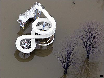 يک سرسره آبی نزديک شهر درسدن آلمان در جريان بالا آمدن سطح رودخانه البه کم کم زير آب پنهان می شود.