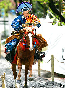 سوار کار تيرانداز ژاپنی در لباس سامورايی های آن کشور در فستيوال يوب سوام در توکيو |