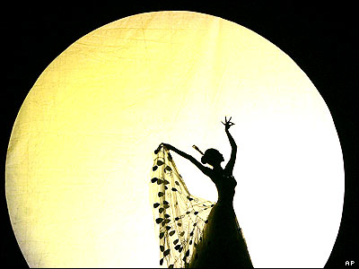 يک رقصنده چينی در هنگام اجرای رقص طاووس در استان يونن چين