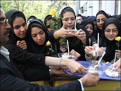 دختران دانشجوی ايرانی در مراسم بزرگداشت ميلاد پيامبر اسلام که امروز در تهران برگزار شد