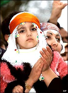 يک دختر کوچک کرد با لباس محلی درجريان تظاهراتی که در حمايت از بر قراری صلح در کردستان ترکيه، امروز در بروکسل برگزار شد