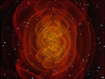 دانشمندان ناسا با حل عددی معادلات نظريه نسبيت عام آلبرت اينشتين توسط سوپر کامپيوتر "کلمبيا" تداخل دو سياه چاله را به صورت سه بعدی شبيه سازی کرده اند. اين تصوير که روز چهارشنبه منتشر شده حاصل عظيم ترين محاسبه رياضی نجومی است که تا به حال توسط يک کامپيوتر ناسا انجام گرفته است.