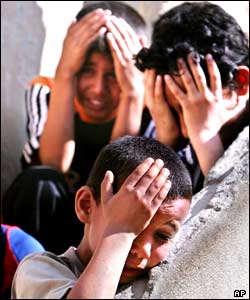 گريه پسر بچه های عراقی در مراسم خاکسپاری يکی از اعضای گروه صدر که امروز در بغداد برگزار شد. جسد او که به ضرب گلوله کشته شده بود، ديشب کشف شد.