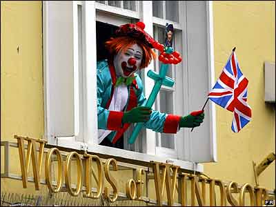 يکی از طرفداران اليزابت دوم ملکه بريتانيا در جريان مراسم هشتادمين سالگرد تولد او ابراز شادی می کند.