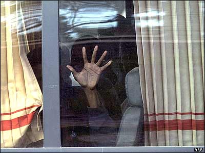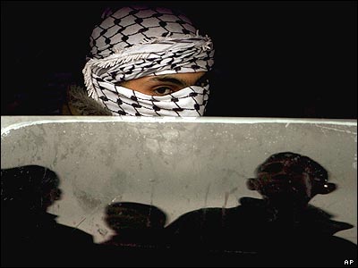 يک فلسطينی مبارز در داخل ماشين ديده می شود که در مراسم خاکسپاری يکی از فلسطينيان شرکت کرده بود.