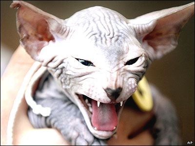 يک گربه از نژاد کمياب سينکس در مسابقه زيبايی گربه ها در بخارست، پايتخت رومانی. گربه هايی که از نژاد های نادر هستند قيمت بالايی دارند و بين سيصد تا هزار دلار به فروش می رسند. اين در حاليست که در آمد متوسط ماهانه در رومانی حدود 150 يورو است.