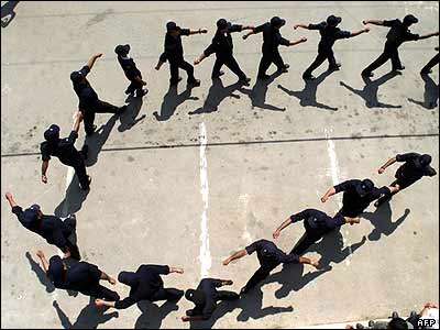 گروهی از نيروهای ويژه پليس فلسطينی شهر جنين در کرانه باختری در مراسم فارغ التحصيلی.