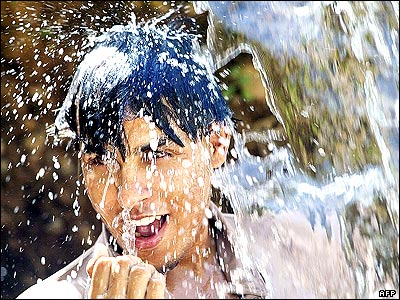 آبتنی يک جوان پاکستانی در پارکی در اسلام آباد. در حالی که دمای هوای اين شهر به 49 درجه سانتی گراد رسيده ، گزارش شده است که تاکنون حدود سی نفر در اثر گرمای شديد هوا جان خود را از دست داده اند.
