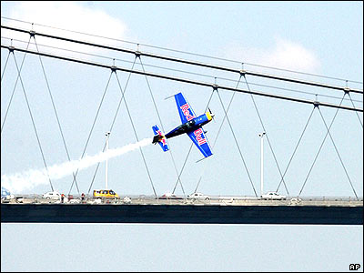 اجرای نمايش هوايی توسط خلبان مجار در جريان مسابقات جهانی حرکات آکروباتيک با هواپيما در استانبول ترکيه. |
