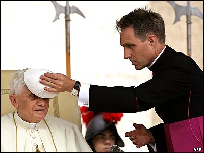 پاپ بنديکت شانزدهم در سخنرانی هفتگی اش در ميدان سن پيتر در واتيکان. وی از زائرين لهستانی خواست که ايمانشان را قوی نگهدارند.