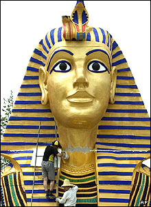 کارگران چينی در حال تکميل نمونه ای از مجسمه ابوالهول در پکن. قرار است پارکی با تم کشور مصر در اين شهر گشايش يابد.