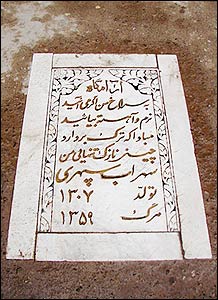 به سراغ من اگر می آييد نرم وآهسته بياييد. مبادا که ترک بردارد چينی نازک تنهايی من. مزار ساده و معصومانه سهراب در مشهد اردهال.