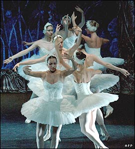 رقصندگان باله روسی در حال اجرای نمايش "درياچه قو" در شهر دوبی.