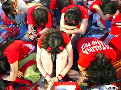 واکنش طرفداران تيم ملی فوتبال کره جنوبی در روز پانزدهم مسابقات جام جهانی فوتبال. تيم سوئیس دو در مقابل هيچ، تيم کره جنوبی را شکست داد |