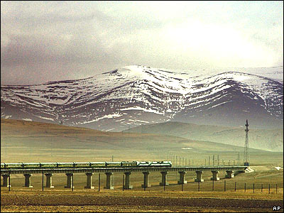 مرتفع ترين قطار از سطح زمين که غرب چين را با تبت وصل می کند. اين قطار در تاريخ اول ژوئيه آغاز به کار خواهد کرد. |
