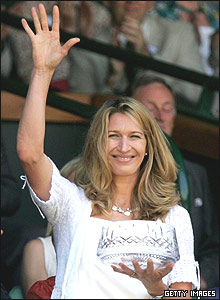 ستيفی گراف قهرمان سابق مسابقات تينس ويمبلدون هنگام دريافت جايزه برای موفق شدن در مسابقات مهم جهانی تينس، در ششمين روز اين مسابقات در لندن |