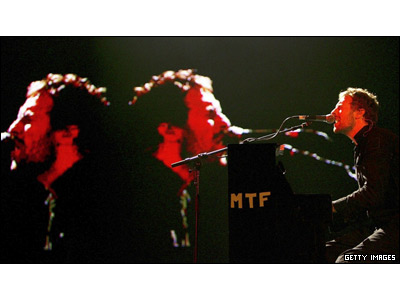 کريس مارتتين آواز خوان گروه بريتانيای "کولد پلی" در حال اجرای آهنگی در تور جهانی اين گروه، در ملبورن استراليا