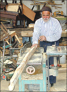 پير مرد نجاری که سالهاست مغازه اش جلو مسجد جامع دامغان است.