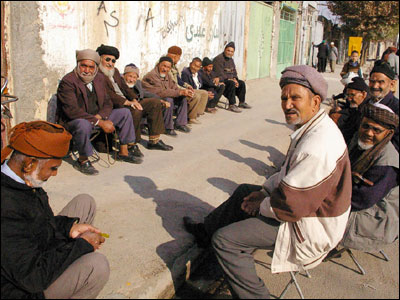 گروهی از پیرمردهای افغان در آفتاب صبحگاه پاییزی خودشان را گرم می کنند. آقای نوری یکی از آنها با شوخ طبعی می گوید آنها هر روز اینجا جمع می شوند و در مورد مسائل روز افغانستان، سرنوشت مهاجران و یا مرگ و میر وجهان آخرت حرف می زنند.