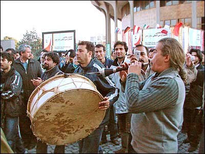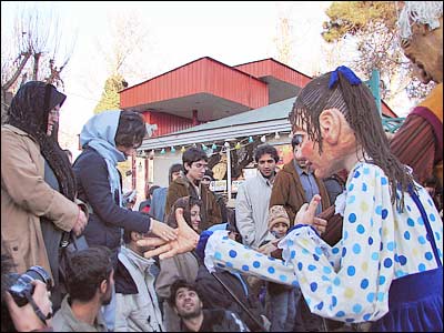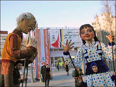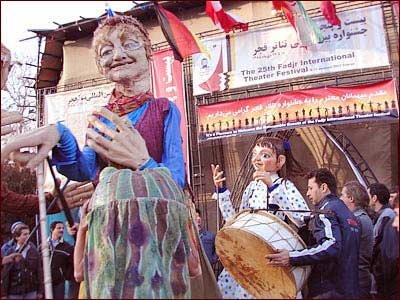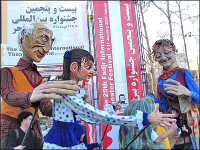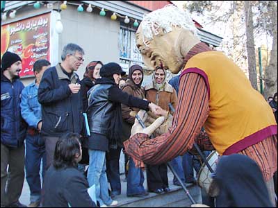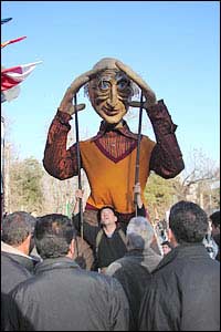 در اين نمايش عروسکهای بزرگ چهار متری با ساز و دهل ايرانی اطراف ساختمان تئاتر شهر برنامه اجرا میکنند.