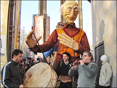 عروسک گردان های فرانسوی عروسک های بزرگ چهار متری را با موسيقی محلی ايرانی می رقصانند.