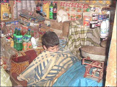 مغازه دار کوچک در سرمای منهای شش درجه