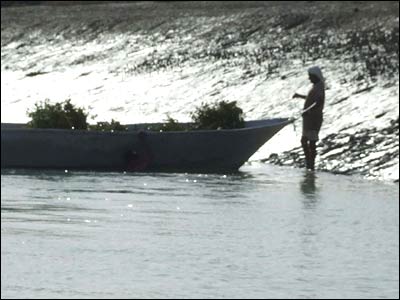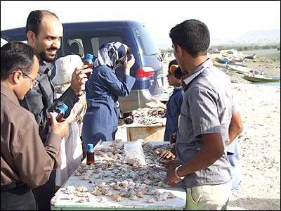 فروش صدف و روغن کوسه در کنار جنگل حرا