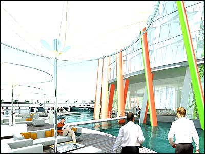 برق اصلی ساختمان بوسیله 17 هزار متر مربع سلول های خورشیدی دیگر تولید خواهد شد که در نزدیکی برج مانند جزیره ای بر روی آب شناور است. توربین 60 متری هم که در بالای این ساختمان قرار دارد انرژی باد را به برق تبدیل می کند.