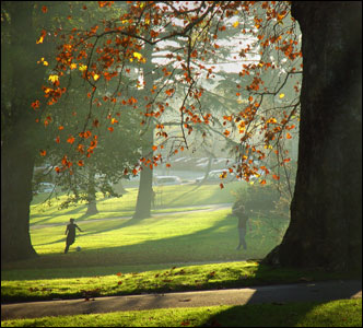 بازی در پارک، در میان مه رقیق |