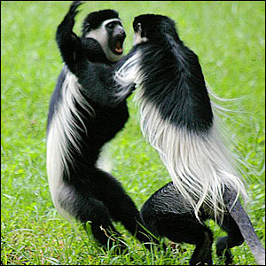 تیم دیویس این عکس را از دو میمون کولومبوس بازیگوش در اتیوپی گرفته است.