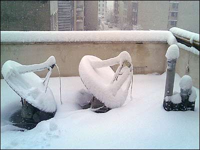برف بر آنتن های بشقابی تهران، عکس از ارژنگ