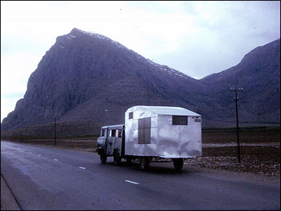 در جاده های جنوب ایران با کاروانی که دیوید داون خود آن را ساخته بود. اولین سفر او به ایران در سال ۱۹۵۸ به همراه همسر و چهار فرزندش بود. بعدها همسرش "گلدی داون" شرح مشاهدات خود را در کتابی به نام "۲۱ هزار مایل ماجراجویی" منتشر ساخت.