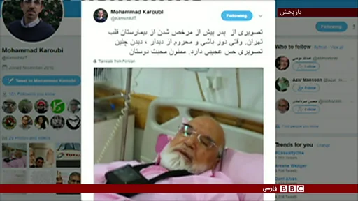 آقای کروبی، ٧٩ ساله، کمتر از یک ماه پیش به دلیل عارضه قلبی در بیمارستان بستری شده بود.