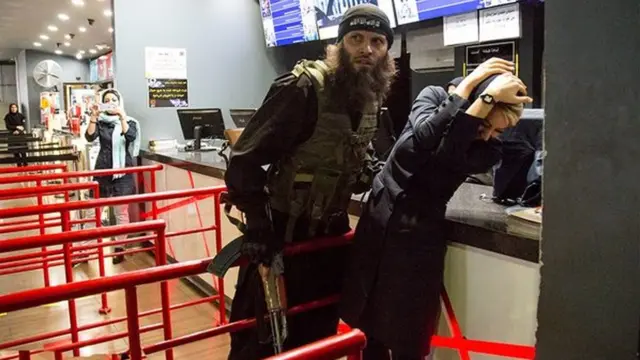 دیروز بعدازظهر (دوشنبه ۱۷ اردیبهشت) افرادی با ظاهر نیروهای داعش در محوطه جلوی پردیس سینمایی کوروش تهران، سوار بر اسب و اسلحه بدست حضور داشتند که بعدا وارد مجتمع شدند.
