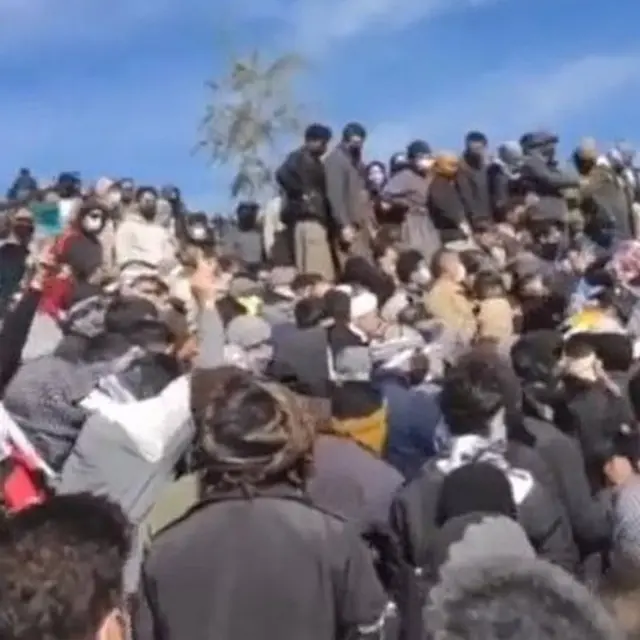 همزمان در تصاویر منتشر شده در شبکههای اجتماعی جمعیت حاضر در مراسم چهلم سینا نادری، از کشتهشدگان اعتراضات کرمانشاه شعار اعتراضی سر دادند.