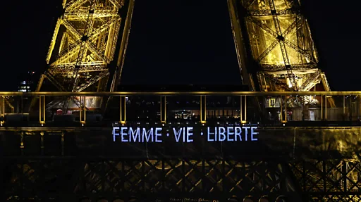 در این مراسم روی برج ایفل هم شعارهای «زن زندگی آزادی» و «اعدام در ایران را متوقف کنید» نقش بست.