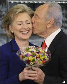 کلینتون در اولین سفر خود در سمت وزیر امور خارجه به اسرائیل با شیمون پرز دیدار کرد
