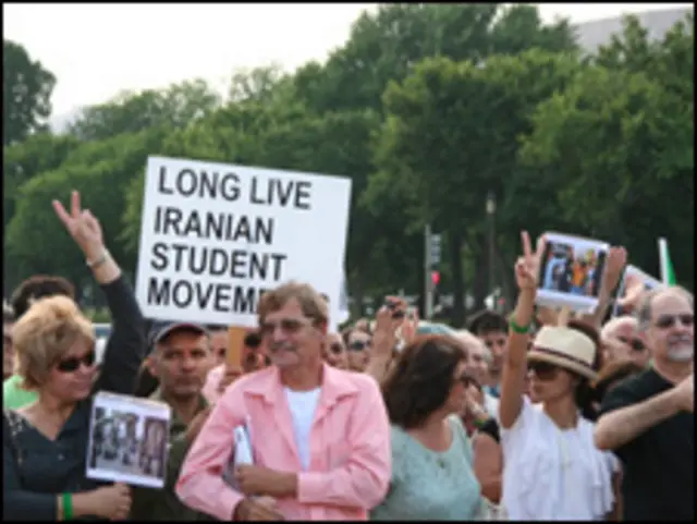 صدها تن از ایرانی ها در واشنگتن، پایتخت آمریکا، به مناسبت دهمین سالگرد حادثه هجده تیر در ایران و نیز در حمایت از مردم معترض به نتیجه انتخابات ریاست جمهوری این کشور، تجمع اعتراض آمیزی برگزار کردند.