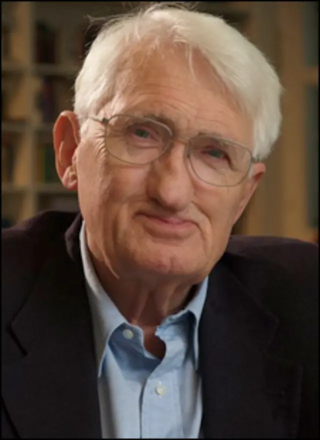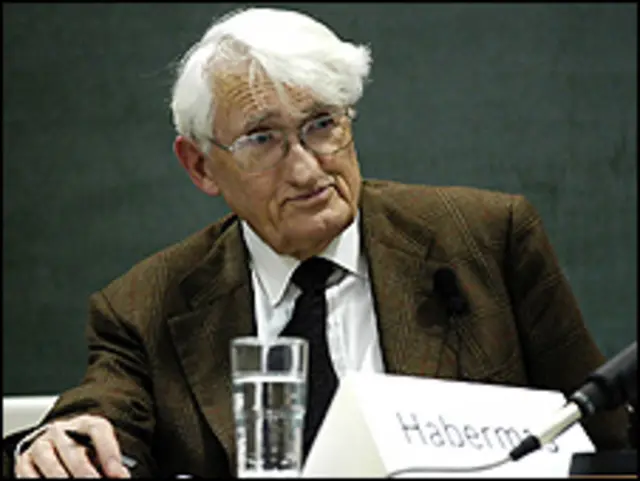 هفتهنامۀ آلمانی "دی تسایت" از او به عنوان «قدرت جهانی» نام برد، عنوانی که تا کنون رسم بوده است از آن برای اشاره به کانونهای استراتژیک استفاده کنند. این پیشرفت بزرگی است که از یک فیلسوف صلحجوی عدالتخواه به عنوان «قدرت جهانی» نام میبرند. هابرماس یک فرزانۀ عمومی است؛ او فیلسوف پهنۀ همگانی است. در تاریخ فلسفه ثبت خواهد شد که نام این وجدان اخلاقی عصر ما را هم به عنوان مظهر قدرت جهانی خرد ثبت کردند و تقریبا همزمان با آن، در ادعانامۀ حکومت ایران به عنوان عامل توطئه.