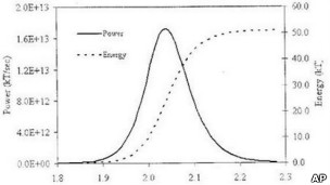 دانشمندان می گویند اگر اعداد موجود در این نمودار درست باشند، بیانگر انفجاری به قدرت ۲ میلیون کیلو تن خواهد بود و ایران توانایی انجام آن را نخواهد داشت.