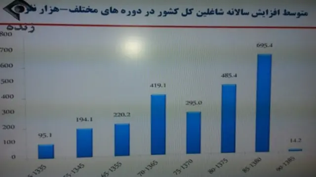 در بخش دیگری از این برنامه مسعود نیلی، کارشناس اقتصادی با نمودارهایی میزان اشتغال ایجاد شده در بازه های زمانی ۵ و ۱۰ ساله را از سال ۱۳۳۵ تا ۱۳۹۰ نشان داد که بر اساس آن، کمترین اشتغال خالص ایجاد شده مربوط به سالهای ۱۳۸۵ تا ۱۳۹۰ بود.