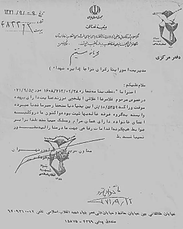 او ادامه میدهد: «از طریق بنیاد شهید که هیچکاری نمیتوانستیم بکنیم چون پرونده بایگانی شده بود و جواب نمیدادند. ما از طریق ارتش پیگیری کردیم.»