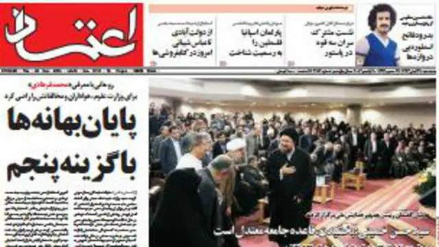 برگزاری همایش اعتدال و اظهارات حسن خمینی، نوه بنیانگذار جمهوری اسلامی در ایران در صفحه اول اغلب روزنامههای مستقل و معتدل منتشر شده ازجمله گروه سیاسی روزنامه فرهیختگان در گزارشی نوشته است؛ بعد از برگزاری پشت سرهم همایشهای مخالفان دولت با عنوانهایی چون دلواپسیم و نمونه جدید آن «منهای عزت، به علاوه تحریم»، دیروز نوبت دولت بود که بعد از یک سال و نیم فعالیت، همایشی با عنوان اعتدال که خود شعار آن را سر داده بود، برگزار کند.