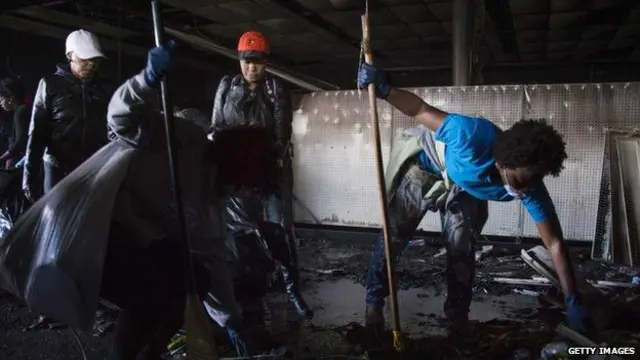 داوطلبان و کارگران شهری صبح سه شنبه کار پاکسازی نواحی خسارت دیده را شروع کردند. صبح سه شنبه هنوز از ساختمان های به آتش کشیده شده در شب قبل دود بلند می شد.